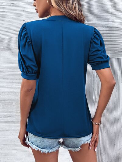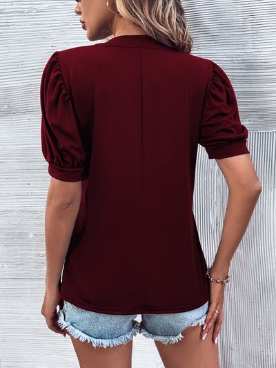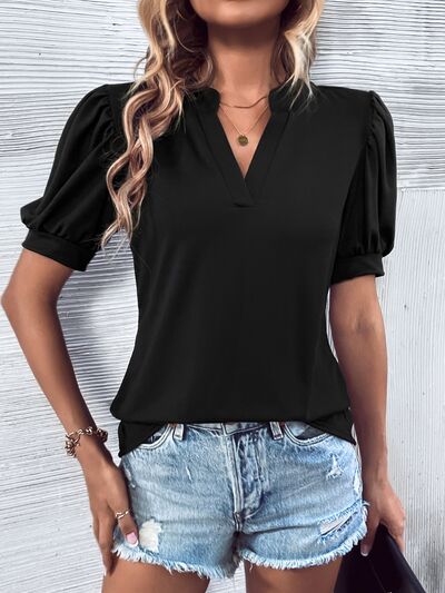 Notched Puff Sleeve Blouse